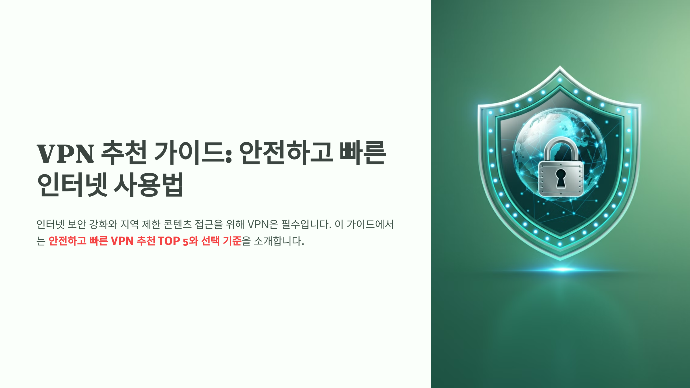 이번 가이드에서는 안전하고 빠른 VPN 추천 TOP 5와 함께 VPN 선택 기준을 소개합니다.