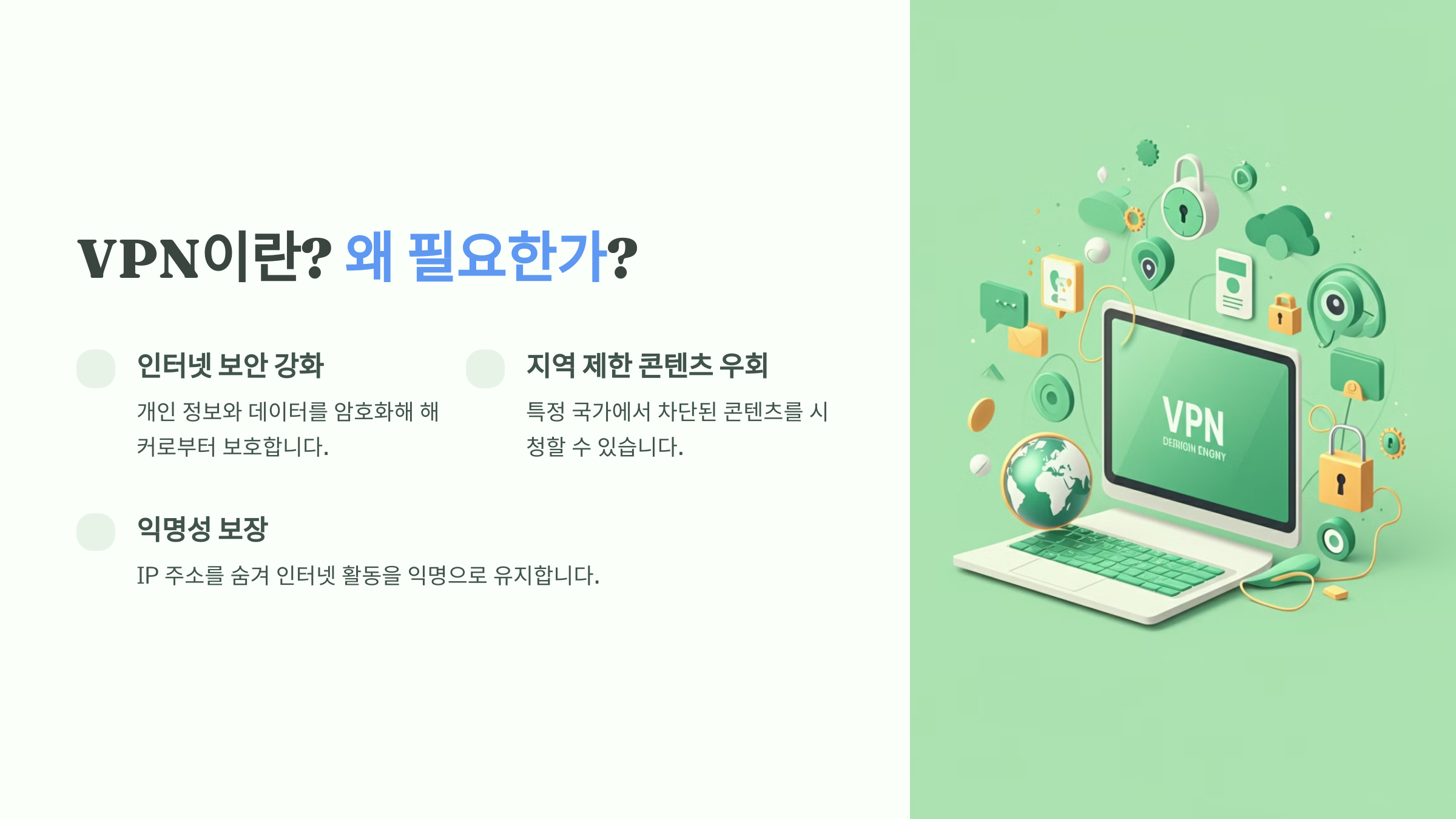 인터넷 보안을 지키고 지역 제한 콘텐츠에 접근하기 위해 VPN(가상 사설망) 사용은 필수입니다.
