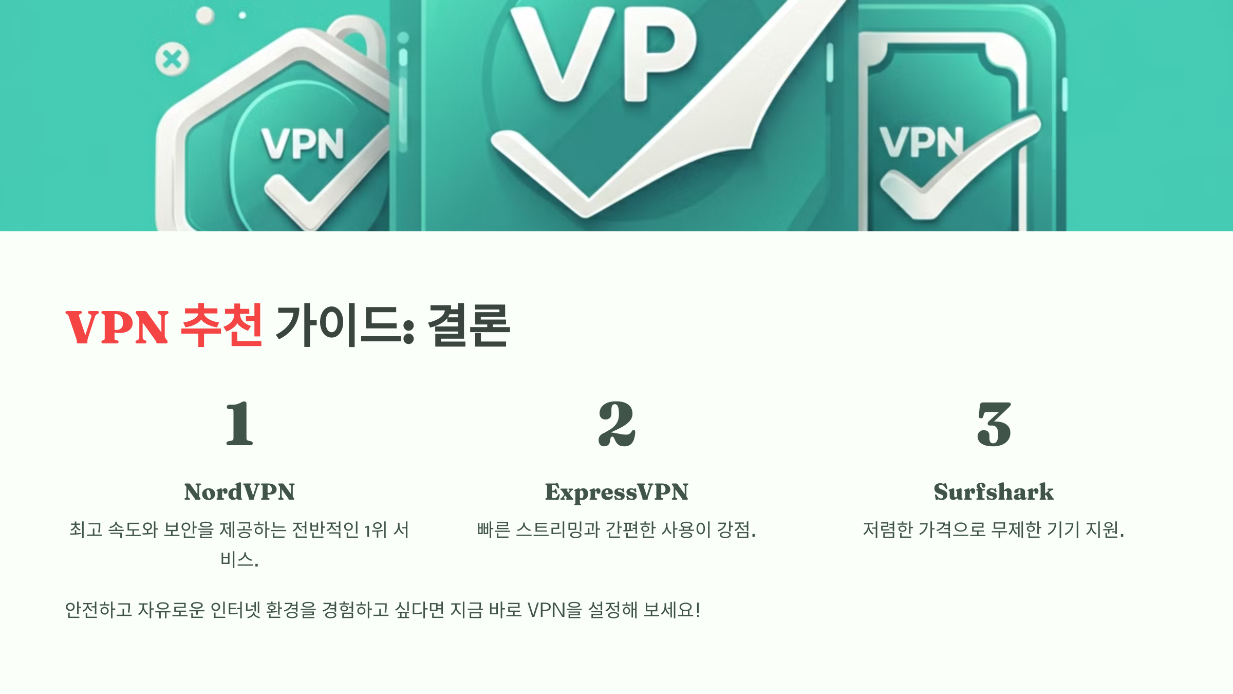 VPN은 인터넷 보안과 익명성을 유지하면서 지역 제한 콘텐츠를 시청하는 데 필수적인 도구입니다. 이번 VPN 추천 가이드를 통해 본인의 사용 목적에 맞는 서비스를 선택해 보세요.